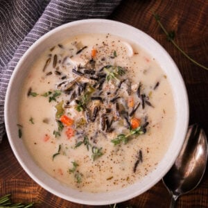 I’m a huge fan of rice in my soup for the thick texture, and wild rice adds a wholesome, nutty bite. It’s naturally high in protein and fiber, giving this dish a nutritious boost that makes it more filling than most soups! I used just wild rice, which has a chewier texture, but a wild rice blend also works if you prefer your rice softer.