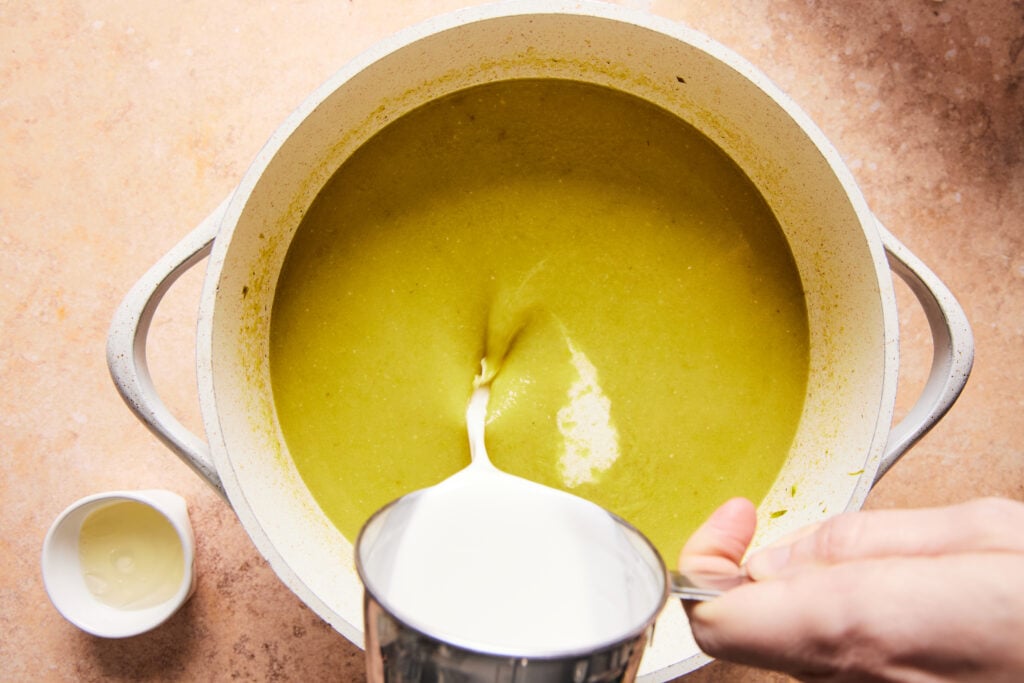 Choose fresh asparagus: Look for bright green, firm stalks with closed tips — they’ll add the best flavor and texture to your soup.