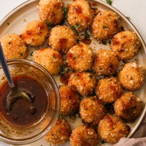 These fried goat cheese balls taste like something you’d order at a restaurant, but better. They’re naturally gluten-free when you use gluten-free flour and gluten-free panko, and you can cook them in the air fryer or shallow fry them, depending on what kind of mood you’re in. The shallow-fried version gets that extra-deep crunch that makes you close your eyes for a second, but the air fryer version is great when you want something lighter.