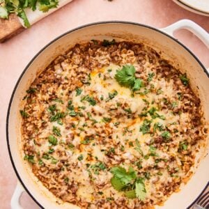 It’s also endlessly adaptable. You can swap in whatever vegetables you have on hand, and chopping them up finely in the food processor helps them blend seamlessly into the skillet. The combination of seasoned beef, tender rice, and gooey cheese makes this the kind of 30-minute skillet meal you’ll keep on repeat all year long.
