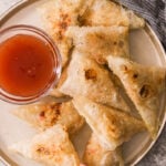 Add about 1/2 inch of avocado oil to a skillet and heat over medium high heat until it reaches 350 degrees F. Add a few crab rangoons without overcrowding the pan. Cook for 3-4 minutes, flipping halfway through, until golden and crunchy. Transfer to a plate line with a paper towel to absorb excess oil. Repeat with the rest of the crab rangoons.