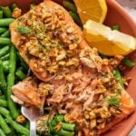 This Mustard Dill Walnut Crusted Salmon is the ultimate weeknight dinner. It’s ready in under 30 minutes with minimal cleanup, and features a crunchy, savory crust that tastes wonderful. Whether you’re following a Paleo, Whole30, or Keto diet, this nutrient-dense recipe is a flavorful way to get your Omega-3s.